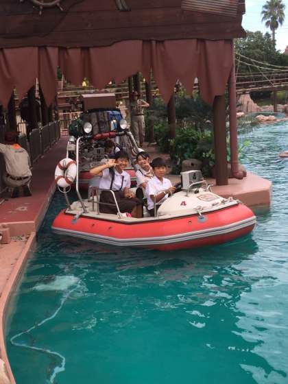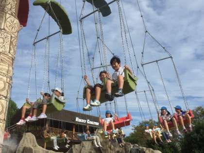 6年生は、グループごとに楽しく乗り物に乗っています。