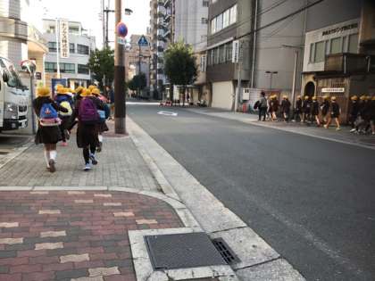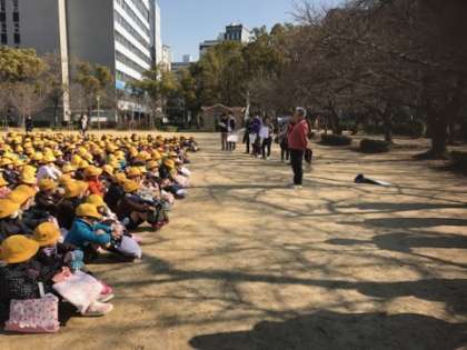 靭公園に全校で避難しました。