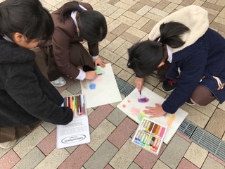 続きは学校で仕上げ、階段に掲示しておりますので、