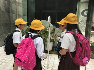 ピース大阪の刻の庭で、平和を祈り、鐘を鳴らしました。
