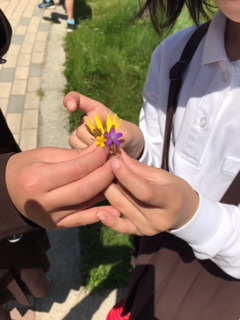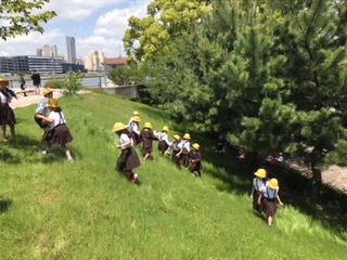 お弁当の後は遊びタイム。遊具がなくても、自然の物を見つけたり、鬼ごっこをしたり、楽しく遊びました。