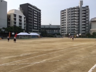 今日は第2回体育朝会です。運動会に向けて入場・退場の練習をします。その前に計画委員の児童と応援団の団長が朝早くに来て、立ち位置の確認等をしました。先頭を引っ張る重要な役です。宜しくお願いします。