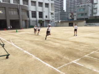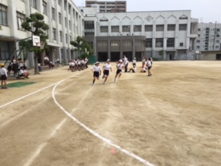 1時間目の休み時間に運動会選抜リレーの選考会を行いました。5年生はトラック1周で競いました。みんな全速力!本番が楽しみです。