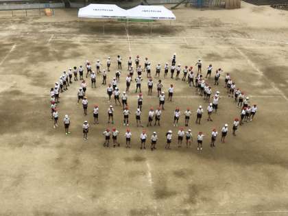 五年生ダンスの決めポーズです。この隊形になるまでに、どのような移動をしているのか楽しみにしていてください。かっこよく決めてダンスを終わります。