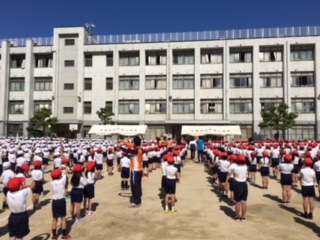 運動会までいよいよ一週間をきりました。今日は朝から全体練習がありました。入場行進(だいぶうまくなってきました)、はじめの体操(図書委員会が頑張って模範演技をしていました)、全学年による紅白対抗大玉リレーの練習を行いました。