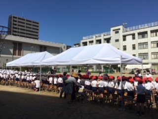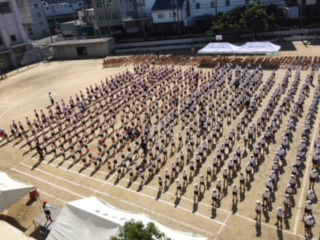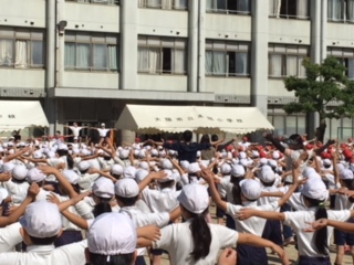 運動会まであと二日となりました。2回目の全体練習はおわりの体操から閉会式、応援団主導による応援練習をしました。気合の入った応援団の掛け声に合わせて赤も白も力が入っていました。