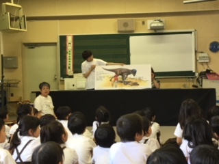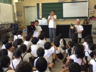 2年生対象に魔女まじょによるお話の会がありました。絵本の読み聞かせや紙芝居、「ソーダ村の村長さん」のリズム音読など工夫を凝らしたプログラムに子供たちは大喜びでした。