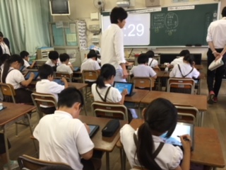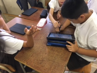 (4年1組 総合的な学習の時間「非常時の備えについて考えよう」の様子です。)