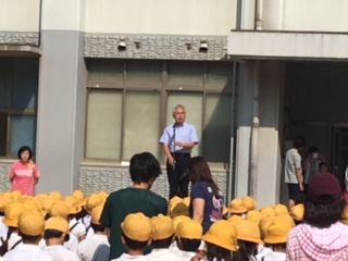 地震発生から1週間が経ちました。まだまだ油断せずに、万一の備えと心構えをしておきたいものです。今日から一週間、栄養教諭実習生の西先生が本田小学校で一緒に勉強します。先生の元気の良いあいさつに子供たちも元気に応えていました。