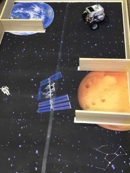 昨日の6年生に続き、今日は5年生がロボットプログラミング教室を体験しました。地球から月へ行くミッションをクリアーできたチームは火星へゴー!