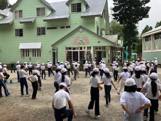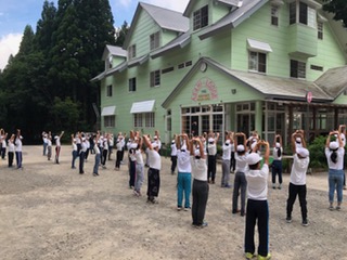 朝の体操をしました。朝はまだ涼しく、空気が澄んでいて気持ちがいいです。