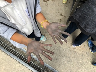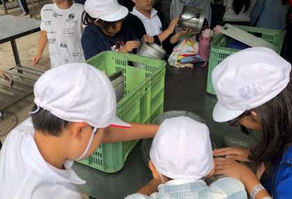 煤で真っ黒になったお鍋も、食器も「最初よりきれいに」を目指して、お鍋がピカピカになるまで何度も何度も磨きます。手も真っ黒です。