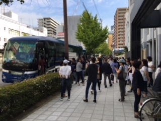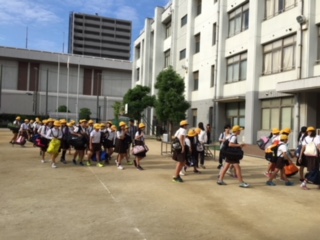 今日から一泊二日の修学旅行に行ってきます!全員出席、天気も良好!たくさんの方々に見送られる中での出発となりました。