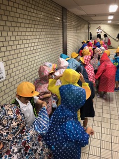阿波座駅に着くと、雨が降っていたので、カッパを着て学校に帰りました。
