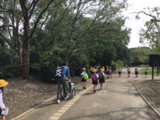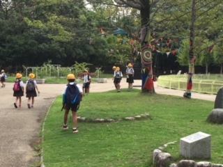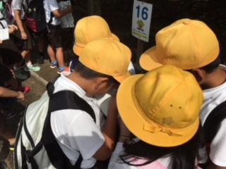 園内にある40種類の植物を探して、名前を見つけよう!グリーンアドベンチャーの開始です。班毎にわかれて活動します。さあ、いくつ見つけられるかな?!