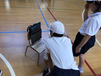 コーチが、もっとカエルのジャンプを高くして!とアドバイス。