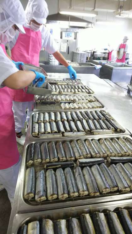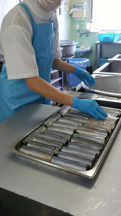 冷凍で届くさんまを並べて、焼き物機で焼きます。