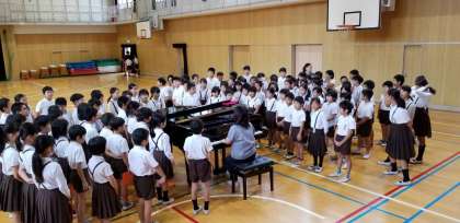 体育館で歌うと綺麗な歌声がさらに響きます。