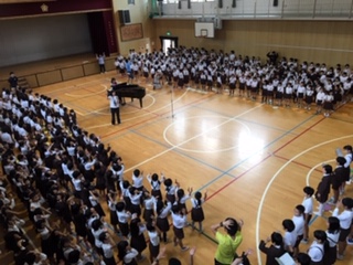 今日の音楽集会の歌は1年生の「かたつむり」と「うみ 」でした。