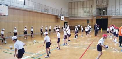 大阪を本拠地として活躍るすプロフットサルチーム「シュライカー大阪」の選手達によるフットサルの出前授業がありました。