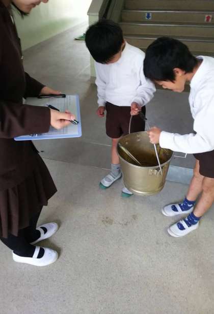 給食委員会が、全部きれいに食べたかをチェックしました。