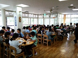 林間2日目は、やや曇り空でしのぎやすく、朝ごはんもしっかり食べました。