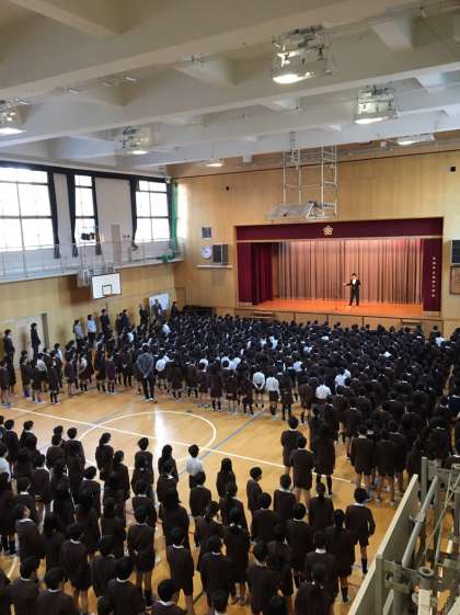 始業式の締め括りは校歌斉唱。