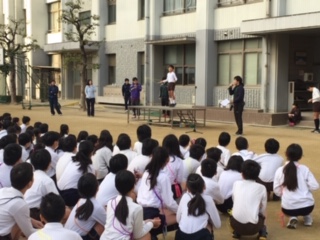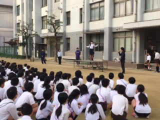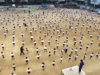 はじめに運動委員会のメンバーが跳び方の見本を披露してくれました。