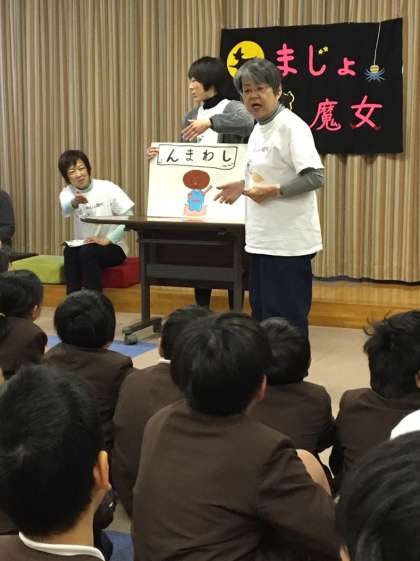 まじょ魔女さんとスペシャルゲスト今村教頭先生に読みきかせをしていただきました。