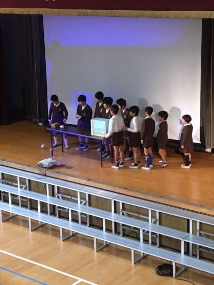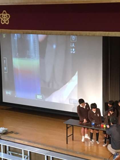 今日は「科学実験クラブ」と「和太鼓クラブ」の発表です。