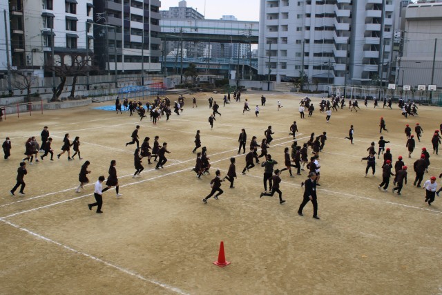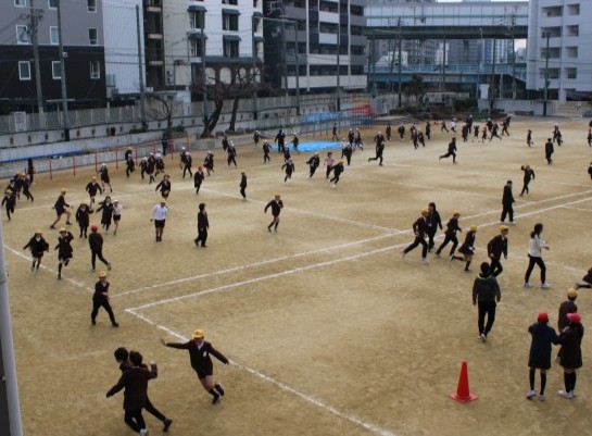 わくわくスポーツタイムの様子です。運動委員会が中心になって進めています。今回は4色おにごっこをしました。