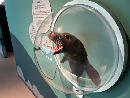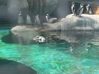 ペンギンは浮いているとゆっくりで、もぐるとすごく速く泳ぎます。みんなびっくりしていました。 -