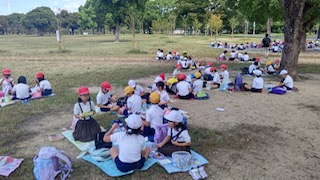 絶好の遠足日和の今日、2年生は、鶴見緑地公園に遠足に来ました。