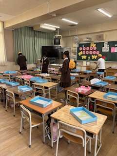 1年生が下校したあと、教室の掃除をしてくれる6年生。