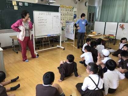 きょうは、とうこうびでした。みんなにあえて せんせいたちは とてもうれしかったです。(1ねんせいのひとに あうのは あしたですね。)