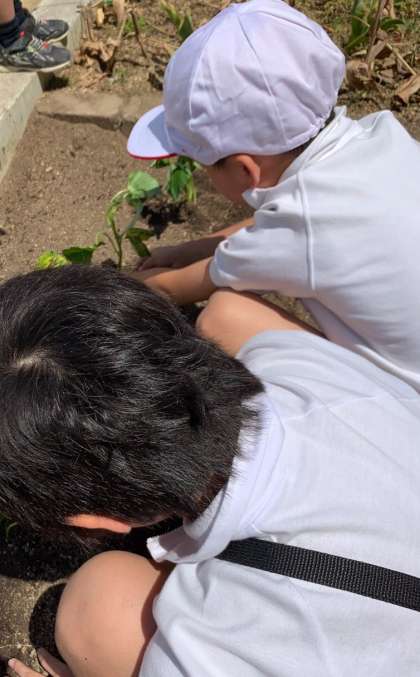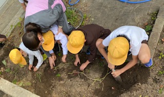 学習園で育てたさつまいもをみんなで楽しそうに掘っていました。