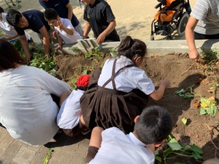 みんなで協力しながら丁寧に苗植え、水やりをしていました。