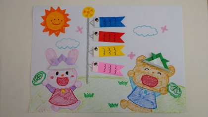 きょうから5がつなので、こいのぼりとかぶとを おってみましょう。