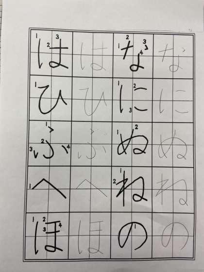 こんかいは、ひらがなの「な」ぎょうと「は」ぎょうを れんしゅうしてみましょう。