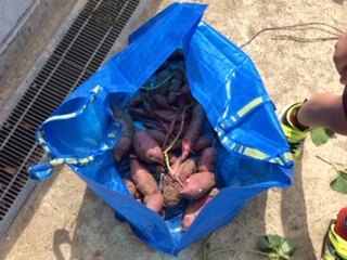 収穫したさつまいもは、1人ひとつずつ持ち帰る予定です。 -