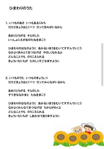 「ひまわりのうた」のきょくにあわせて、せんせいたちが うたってみました。きいてください。