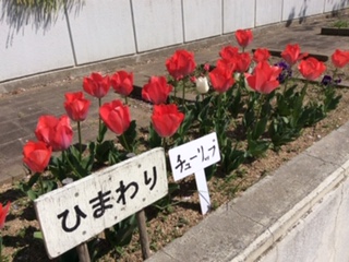 ひまわりのがくしゅうえんのチューリップもきれいにさいています。