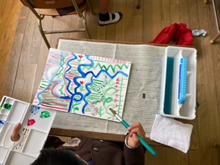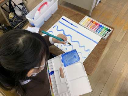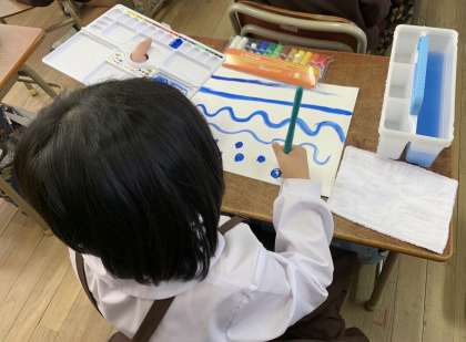 1年生「初めて絵の具を使ったよ!」