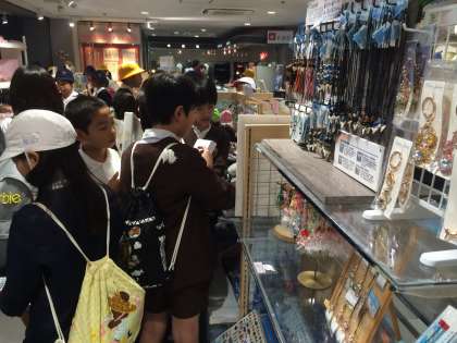 子どもたちは魚を見たり、おみやげを買ったり、食事をしたりと、楽しく活動しています。11時半からはアシカショーが始まります。