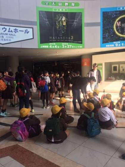 科学館でいろいろな体験をしました。これから、プラネタリウムです。