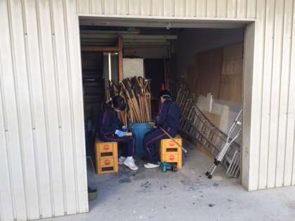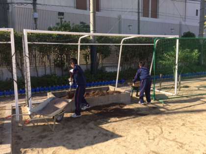 昨日から職場体験に来ている中学生です。今日は朝から、管理作業員さんと一緒に作業をがんばっています。