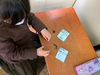生活科の時間には、新しい1年生にプレゼントするための、アサガオの種を入れた袋を準備しました。自分たちが収穫した種を数えて袋に入れました。