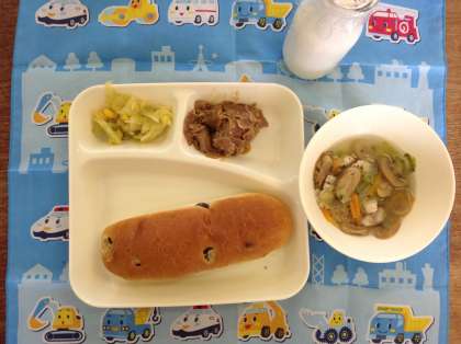 初めての給食がありました。