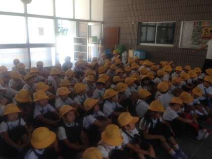 本田小学校の講堂に、子どもたちの歌と手拍子が