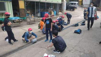朝食のカートンドッグは、班で協力して作ります。
